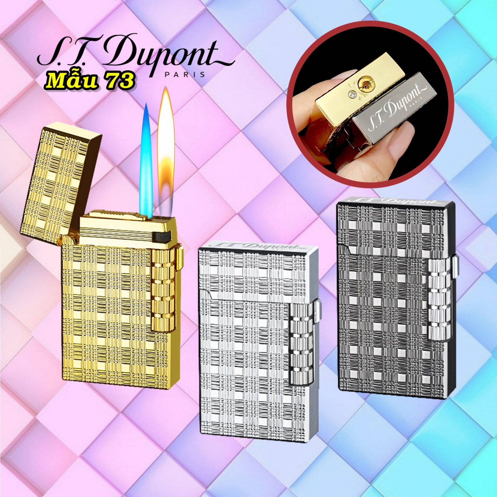 Bật lửa Dupont 2 chế độ lửa vân caro M-73: Nâng tầm đẳng cấp phái mạnh
