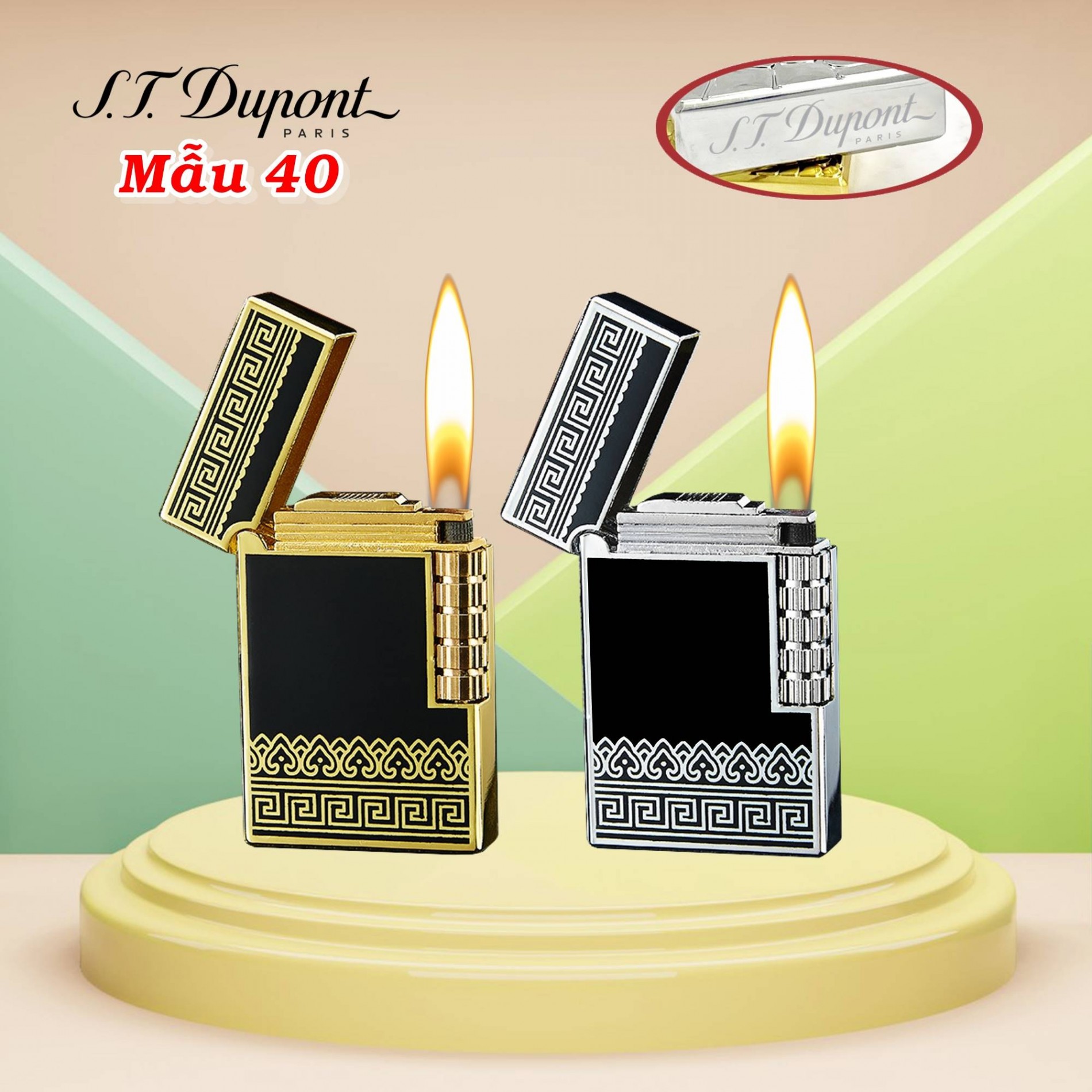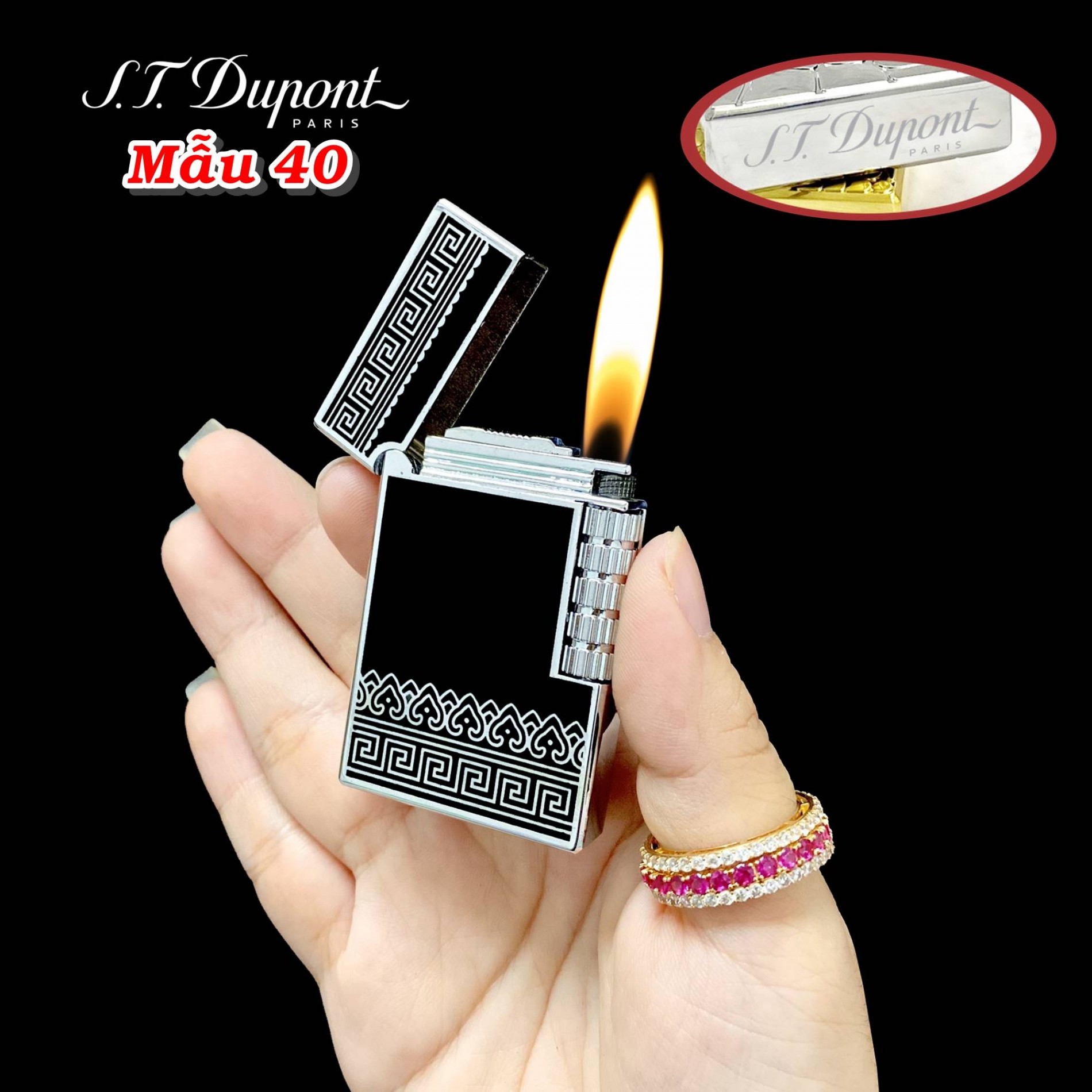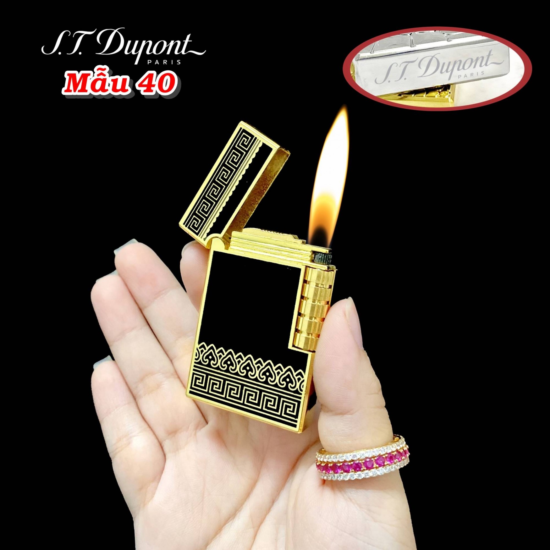 Bật lửa dupont hoa văn trái tim m-40 gas