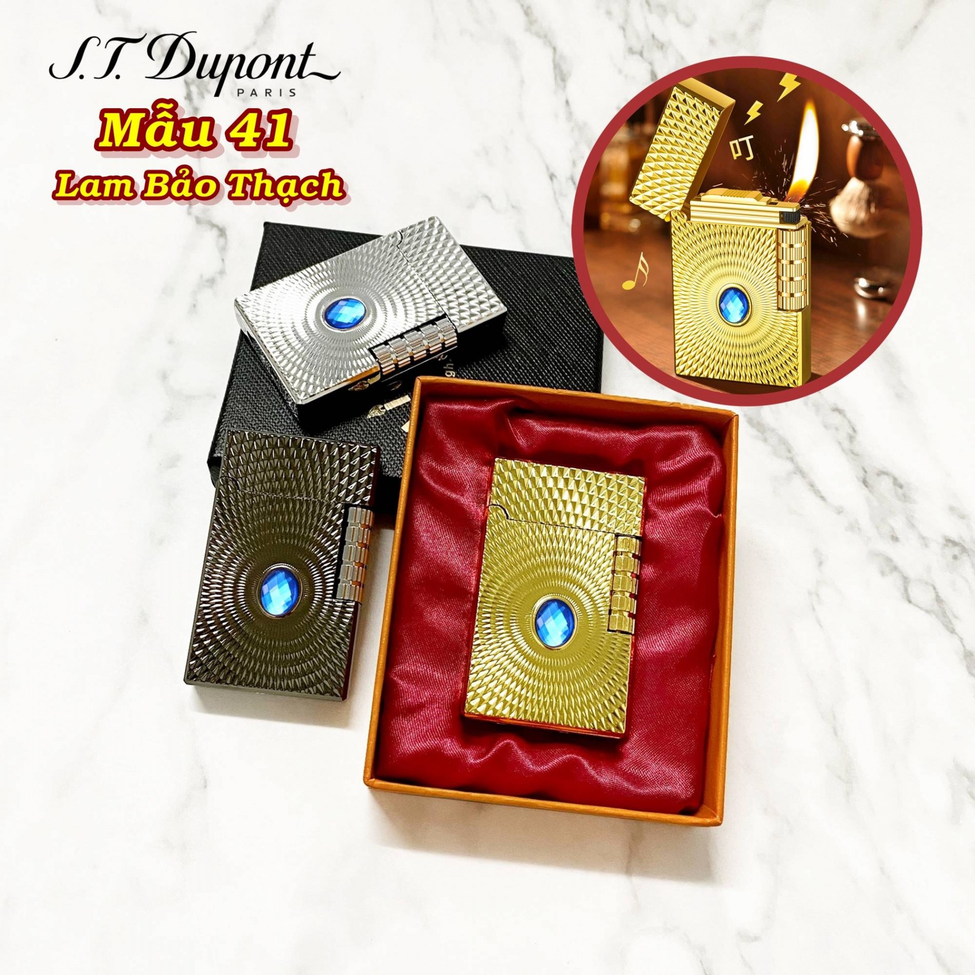 Bật lửa dupont lốc xoáy cẩn ngọc lam m-41 có hộp gas