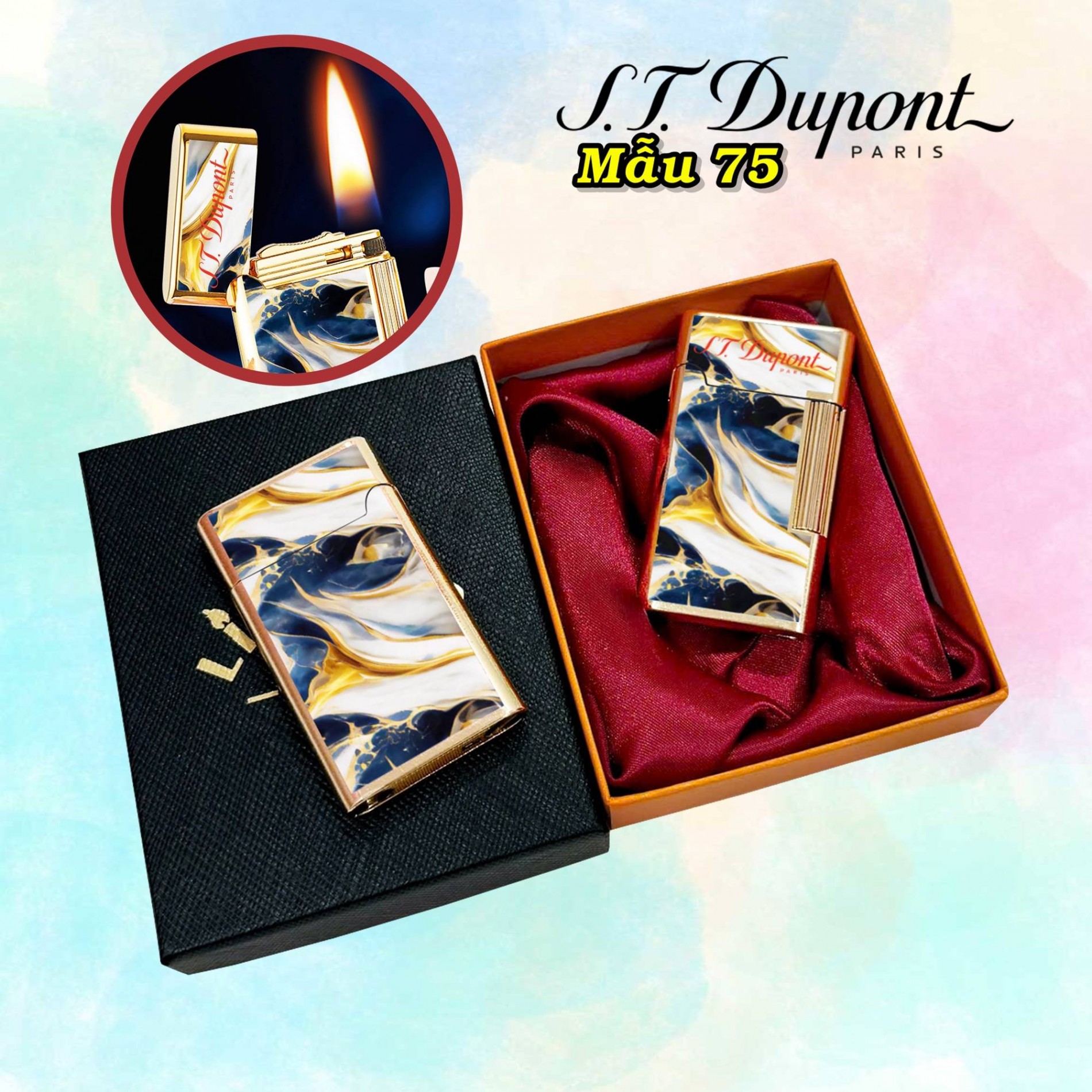 Bật lửa dupont vân đá m-75 có hộp xài xăng