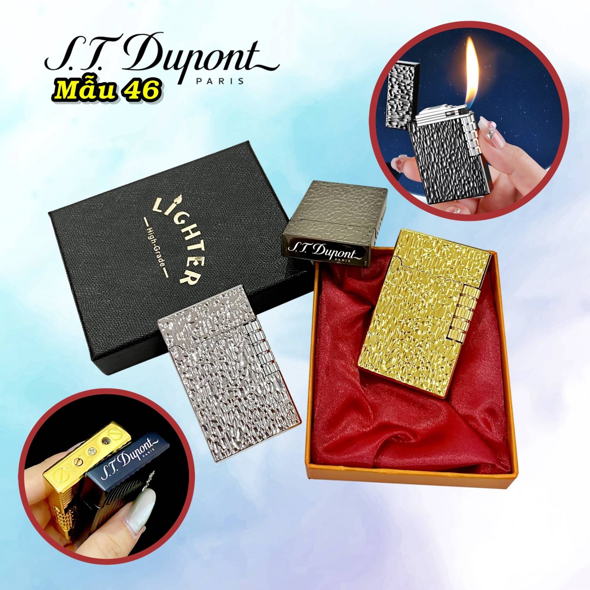 Bật lửa dupont vân gõ búa m-46 có hộp xài gas
