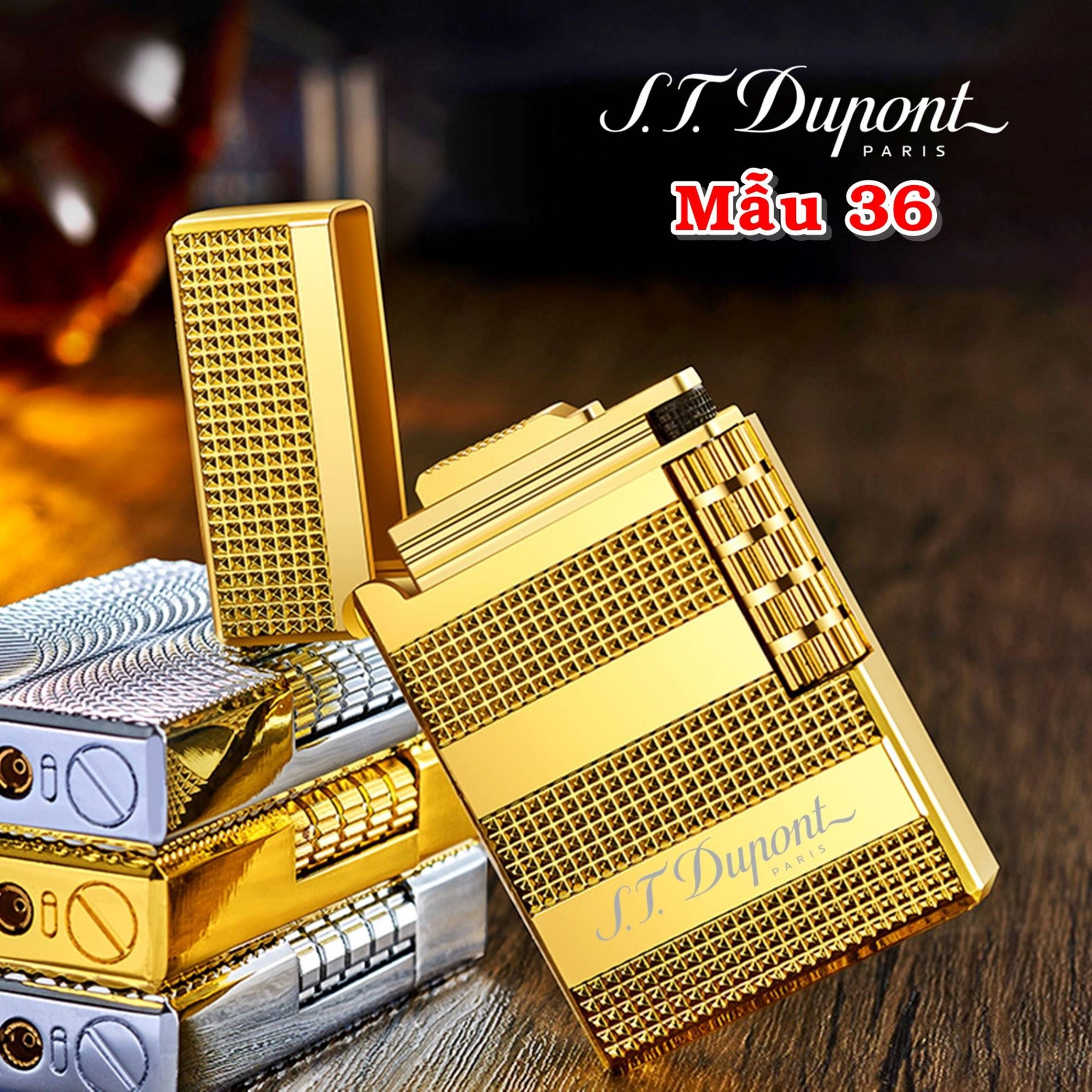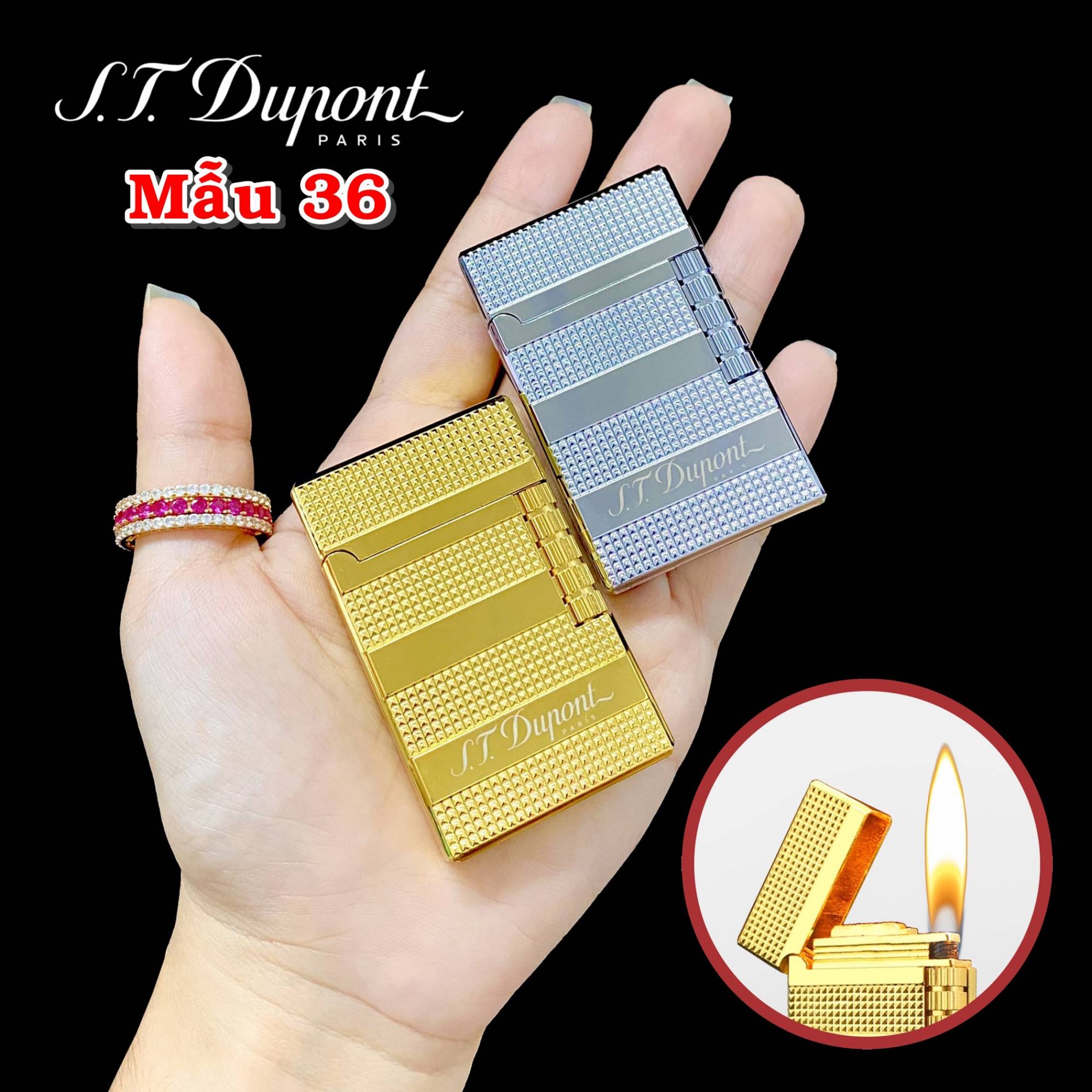 Bật lửa dupont vân kim cương 3 sọc ngang m-36