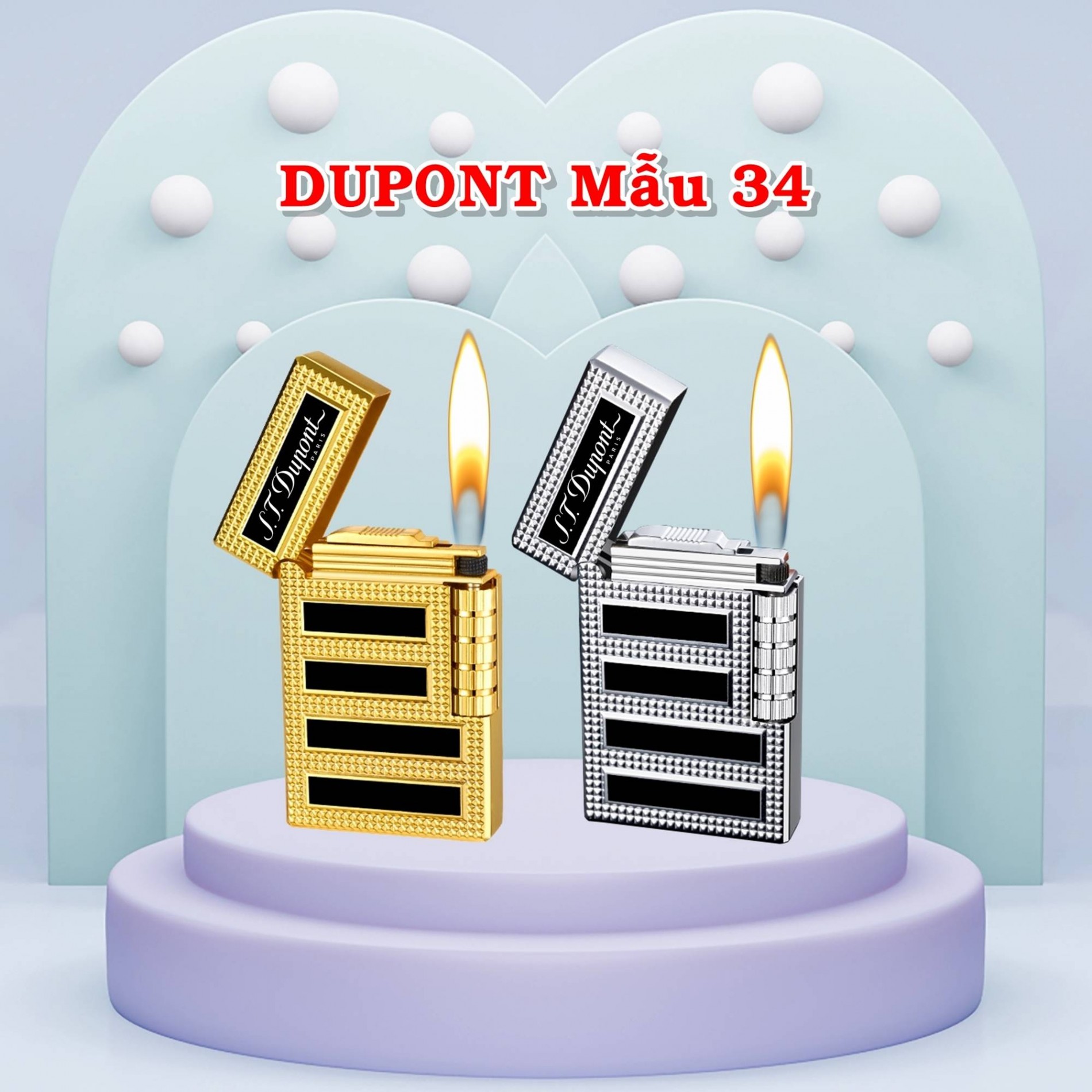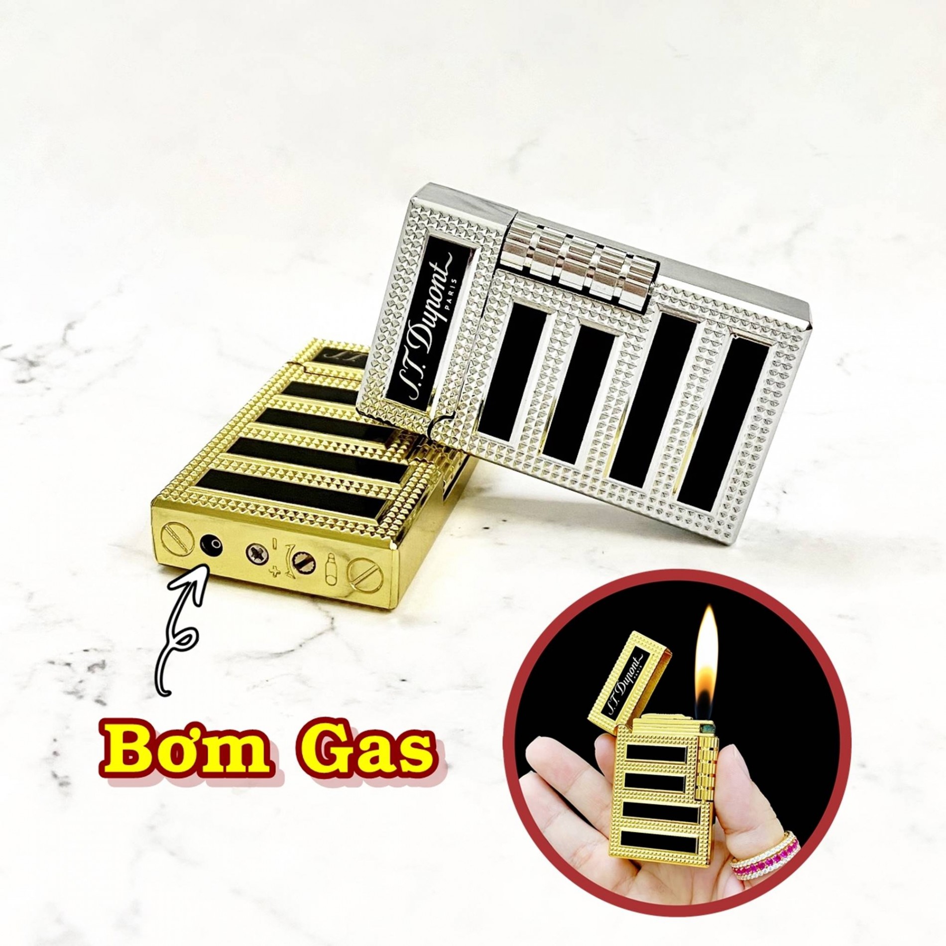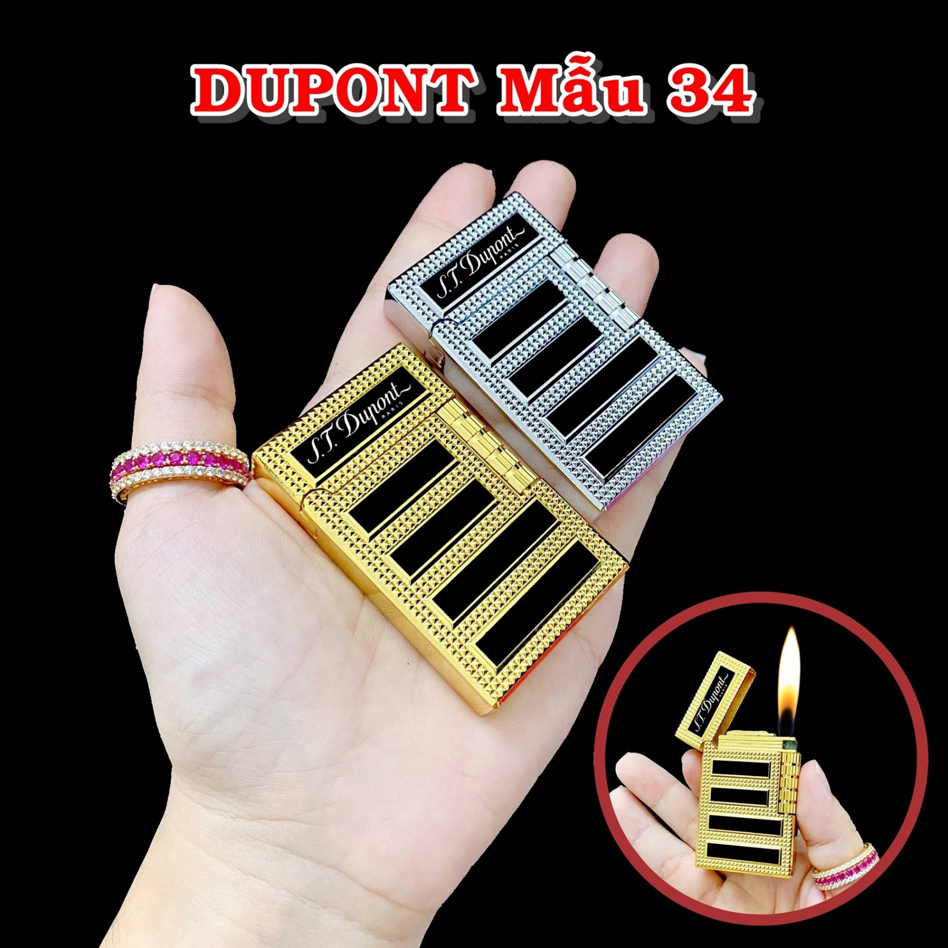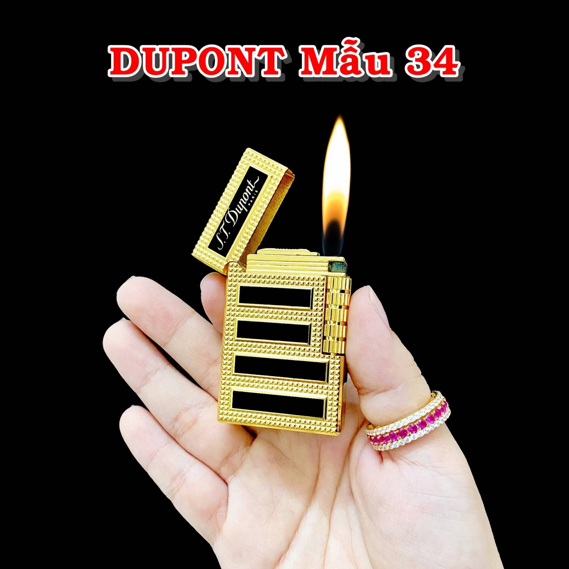Bật lửa dupont vân kim cương sọc đen ngang m-34 gas