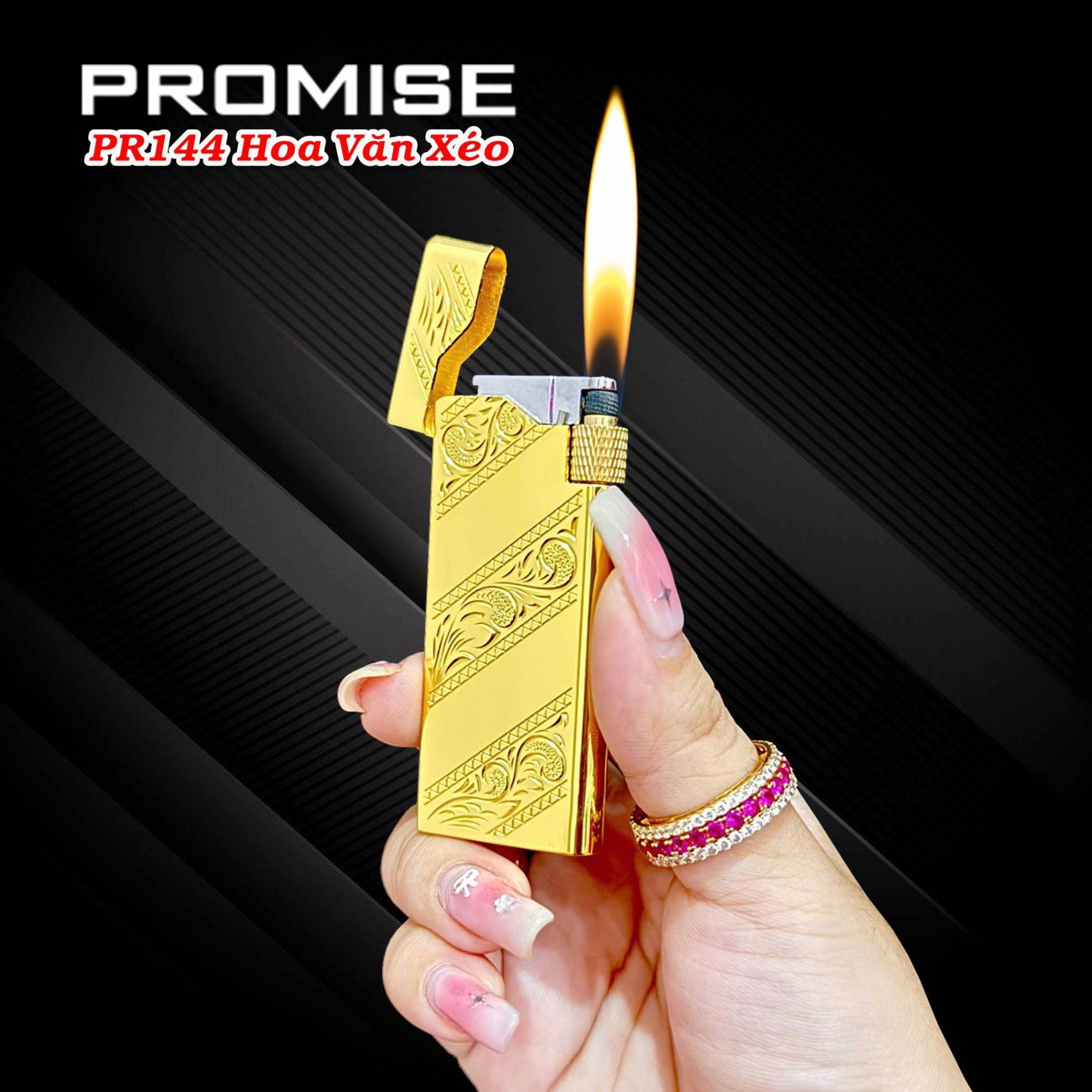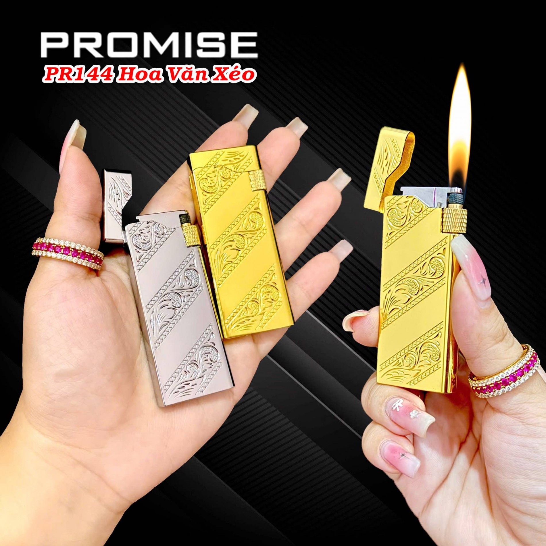 Bật lửa gas đá promise pr144 hình hoa văn xéo dập nổi - (xài gas)