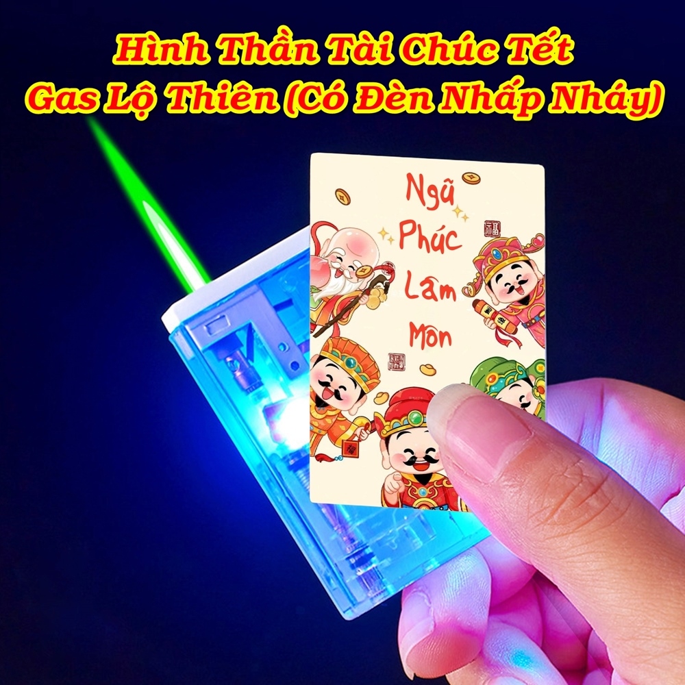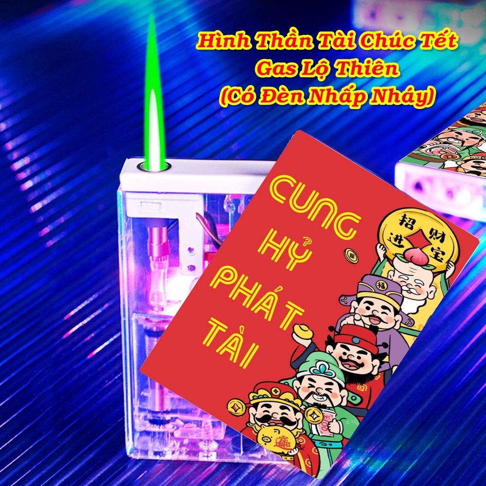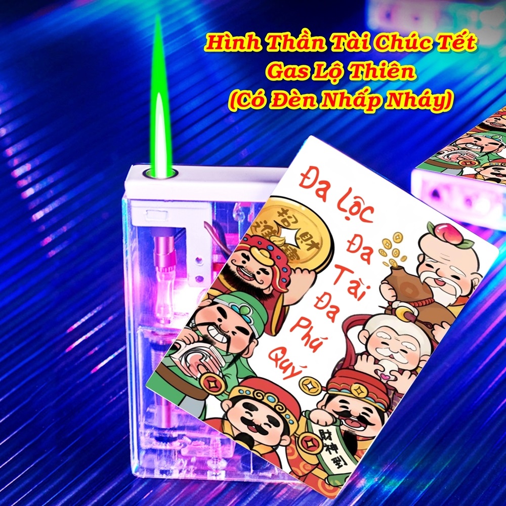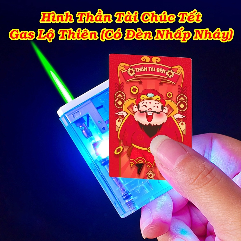 Bật lửa hình thần tài chúc tết gas khò lộ thiên có đèn nhấp nháy