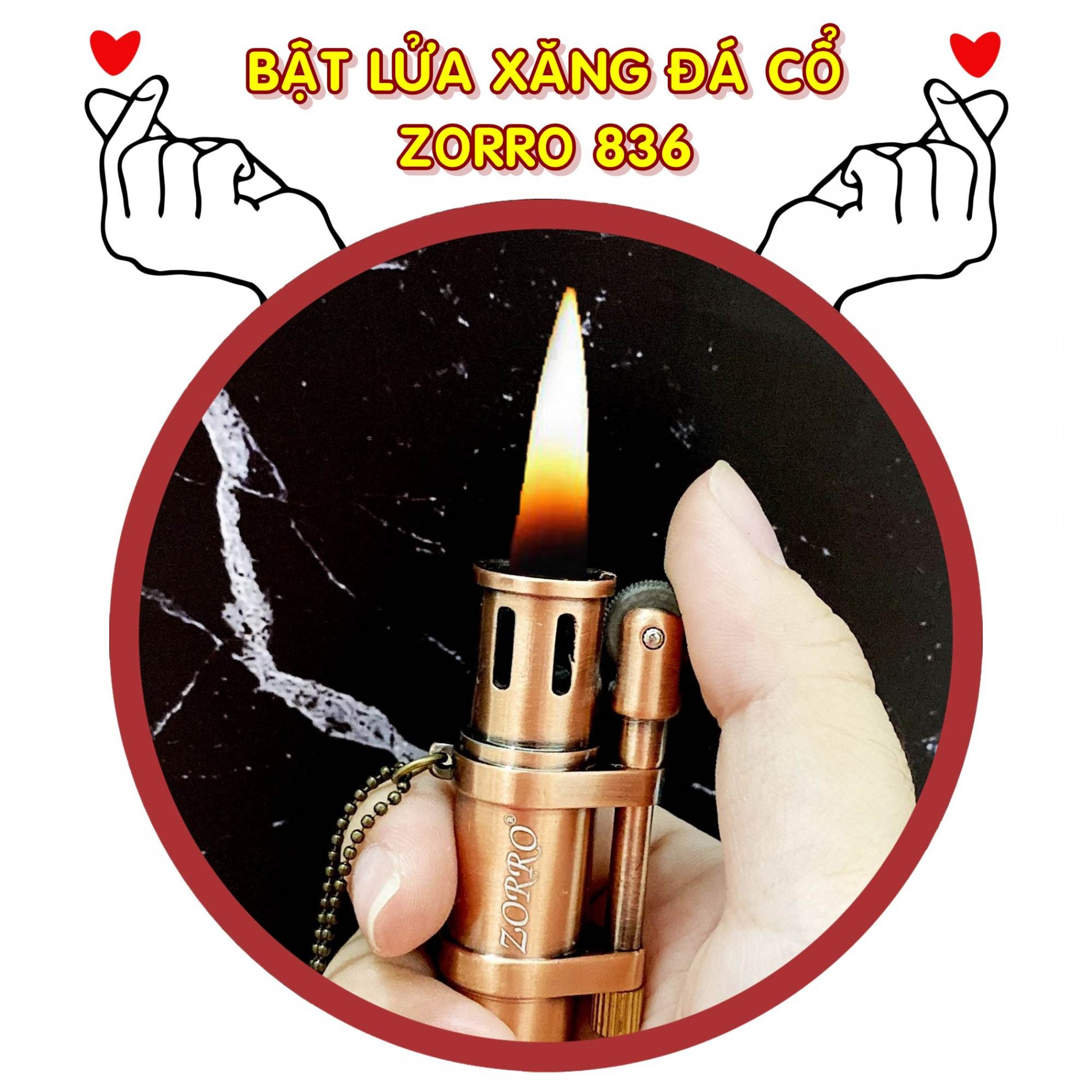 Bật lửa hình trụ nước Zorro 836 xăng đá cổ