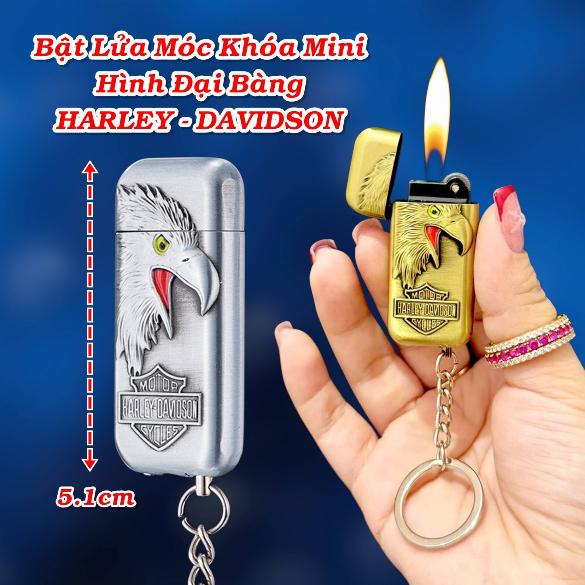 Bật lửa móc khóa mini hình đại bàng harley - davidson dập nổi gas đá