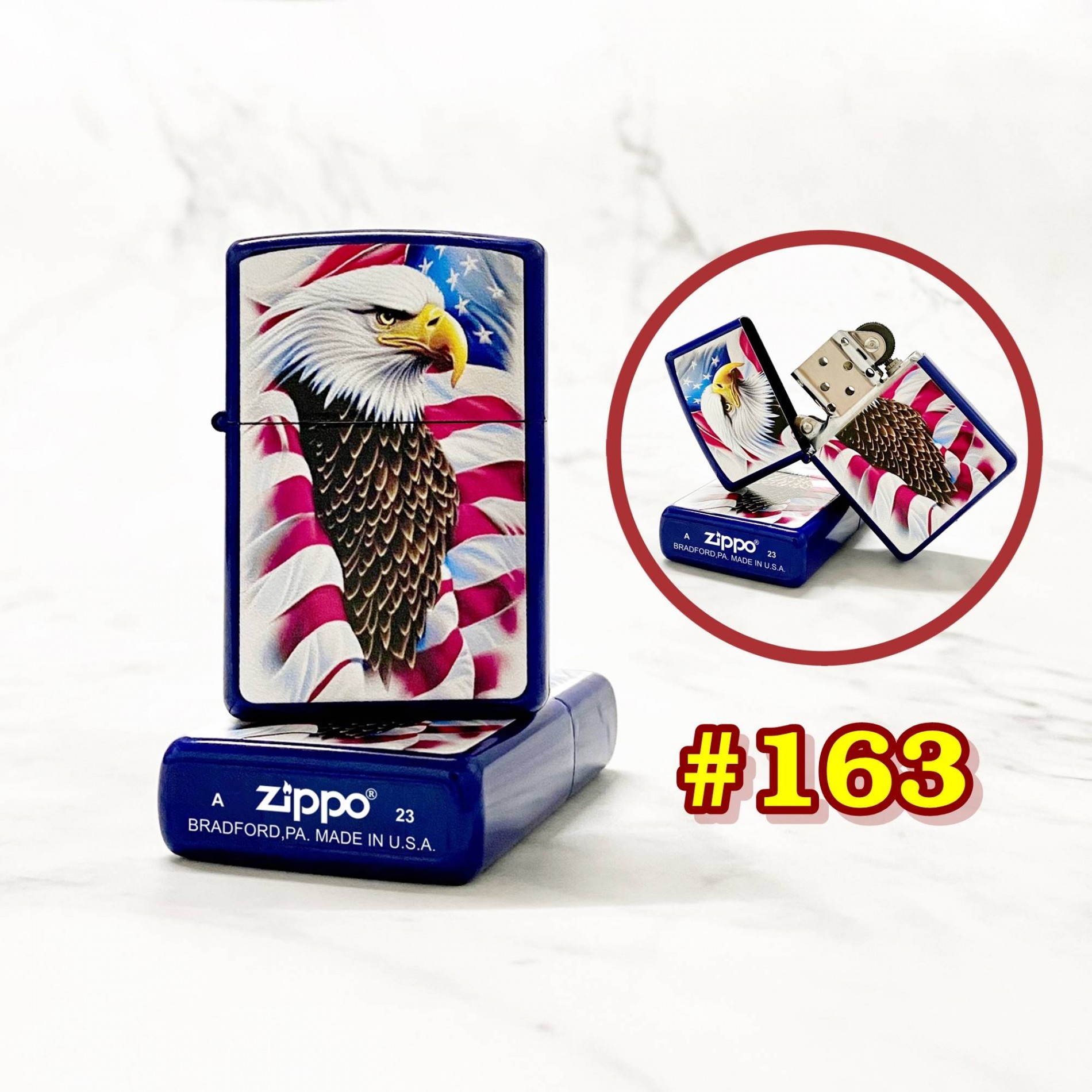 Bật lửa Zippo 2 mặt hình đại bàng cờ mỹ có mộc đáy