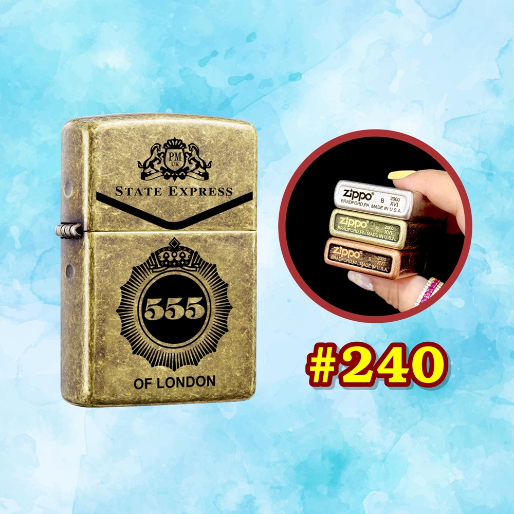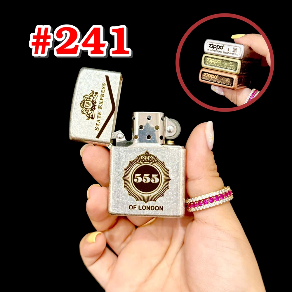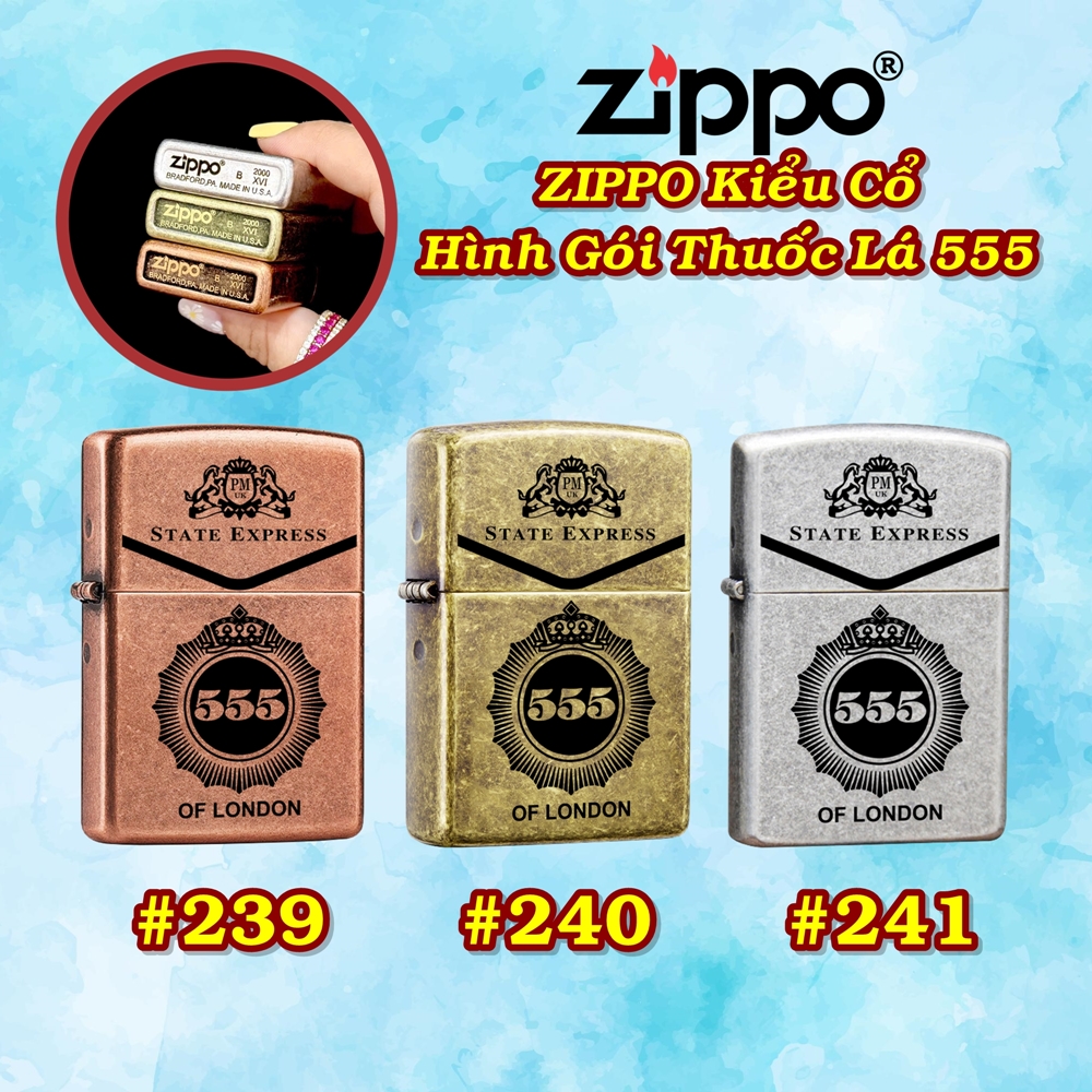 Bật lửa zippo bạc cổ hình gói 555 có mộc đáy xài xăng