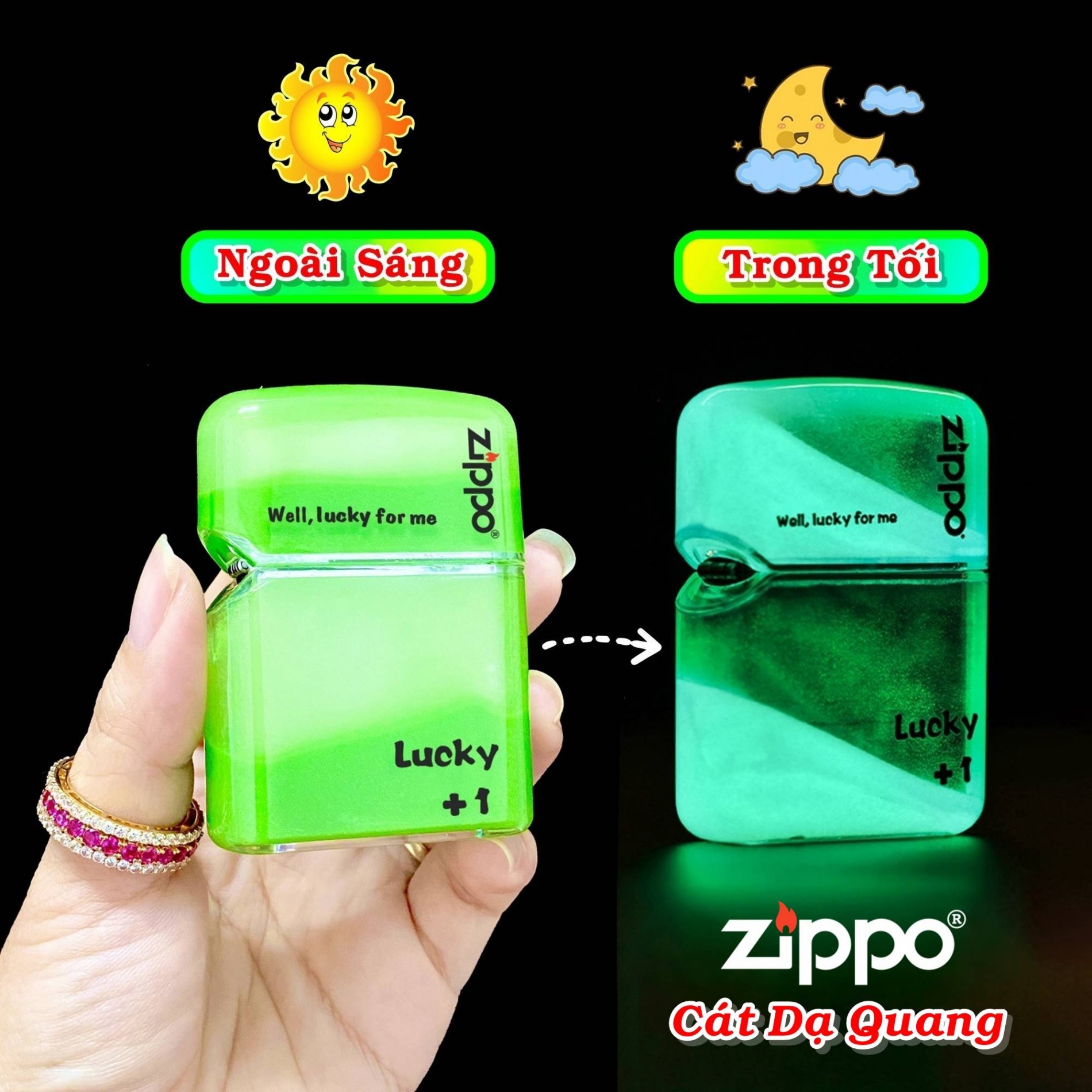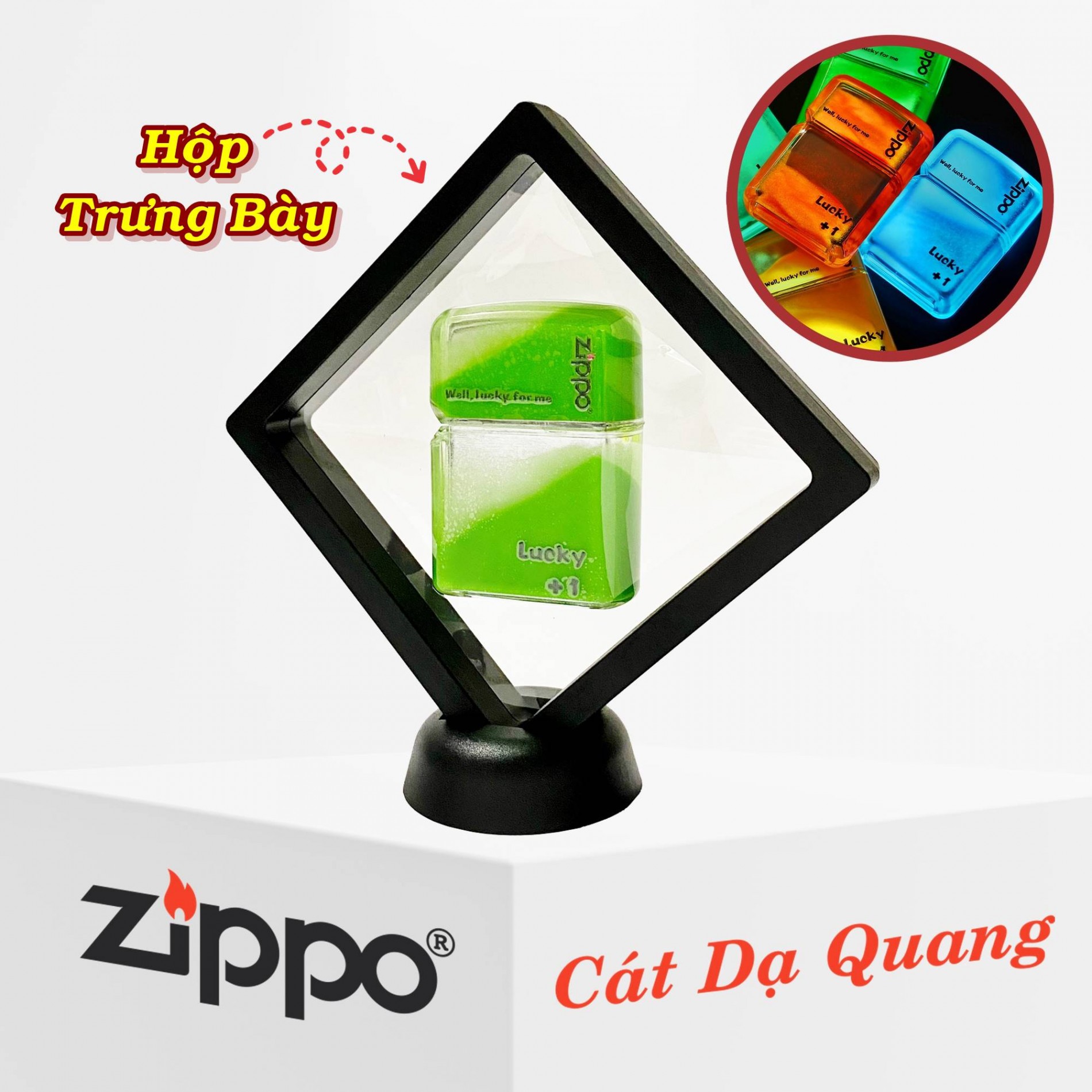 Bật lửa Zippo cát dạ quang màu xanh kèm hộp trưng bày xài xăng