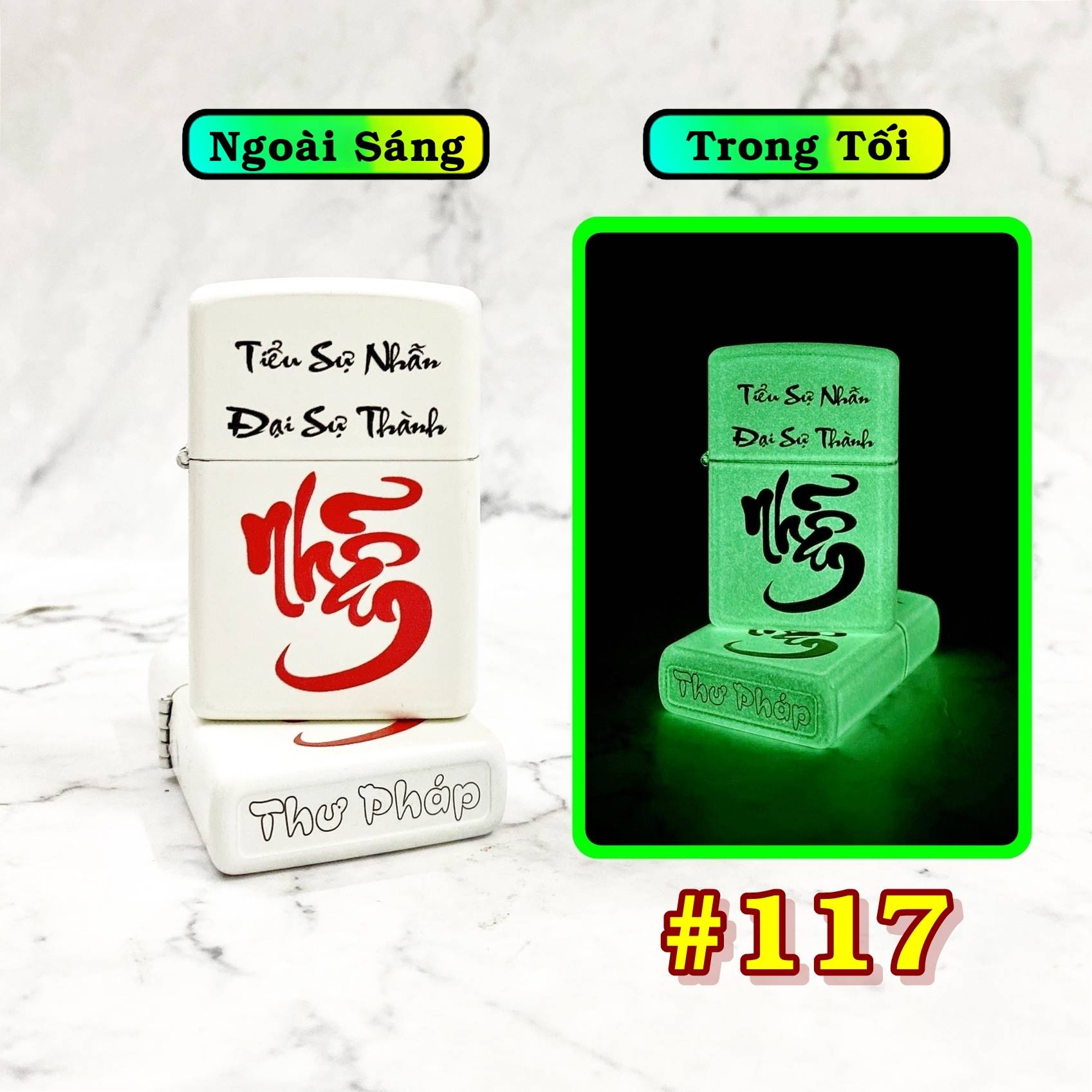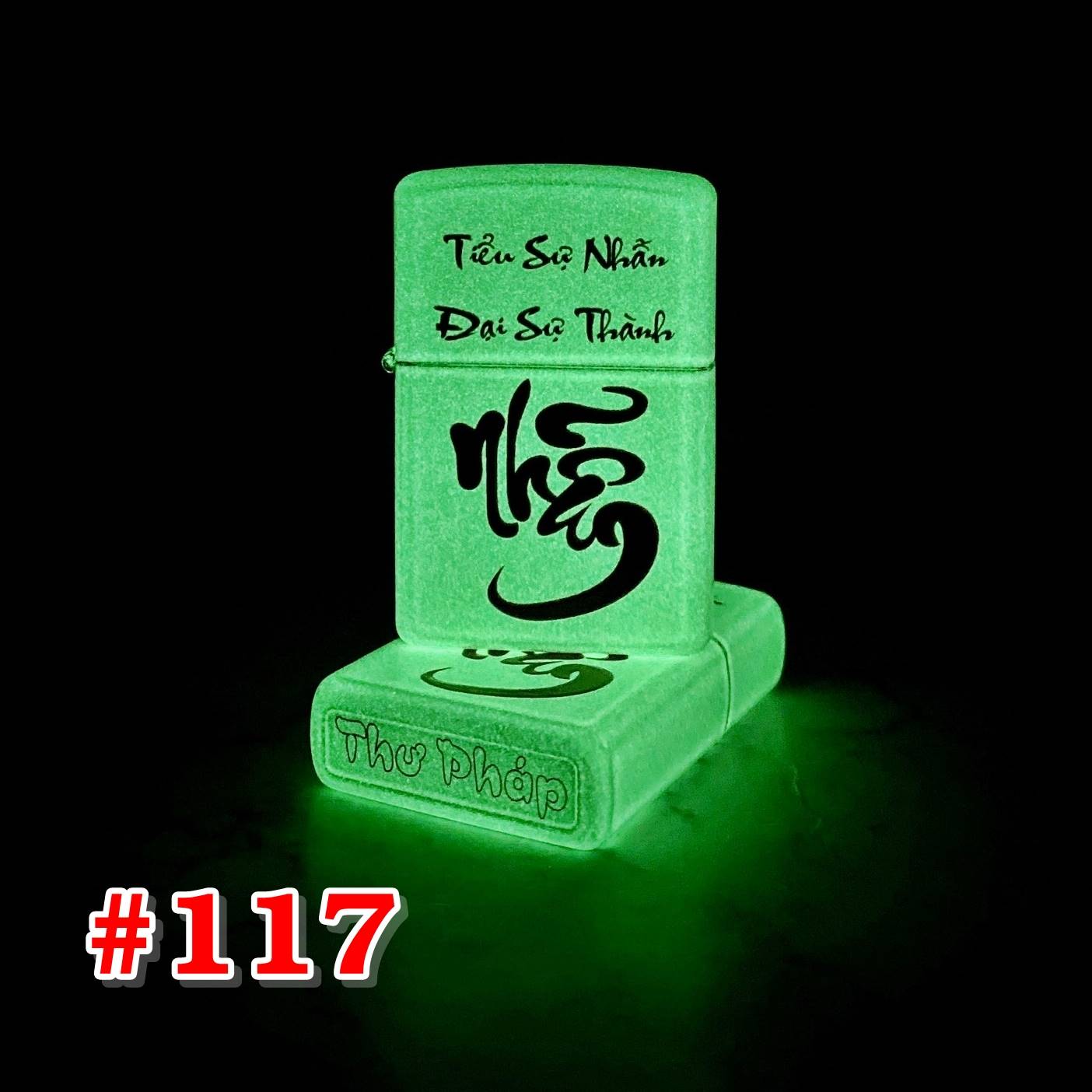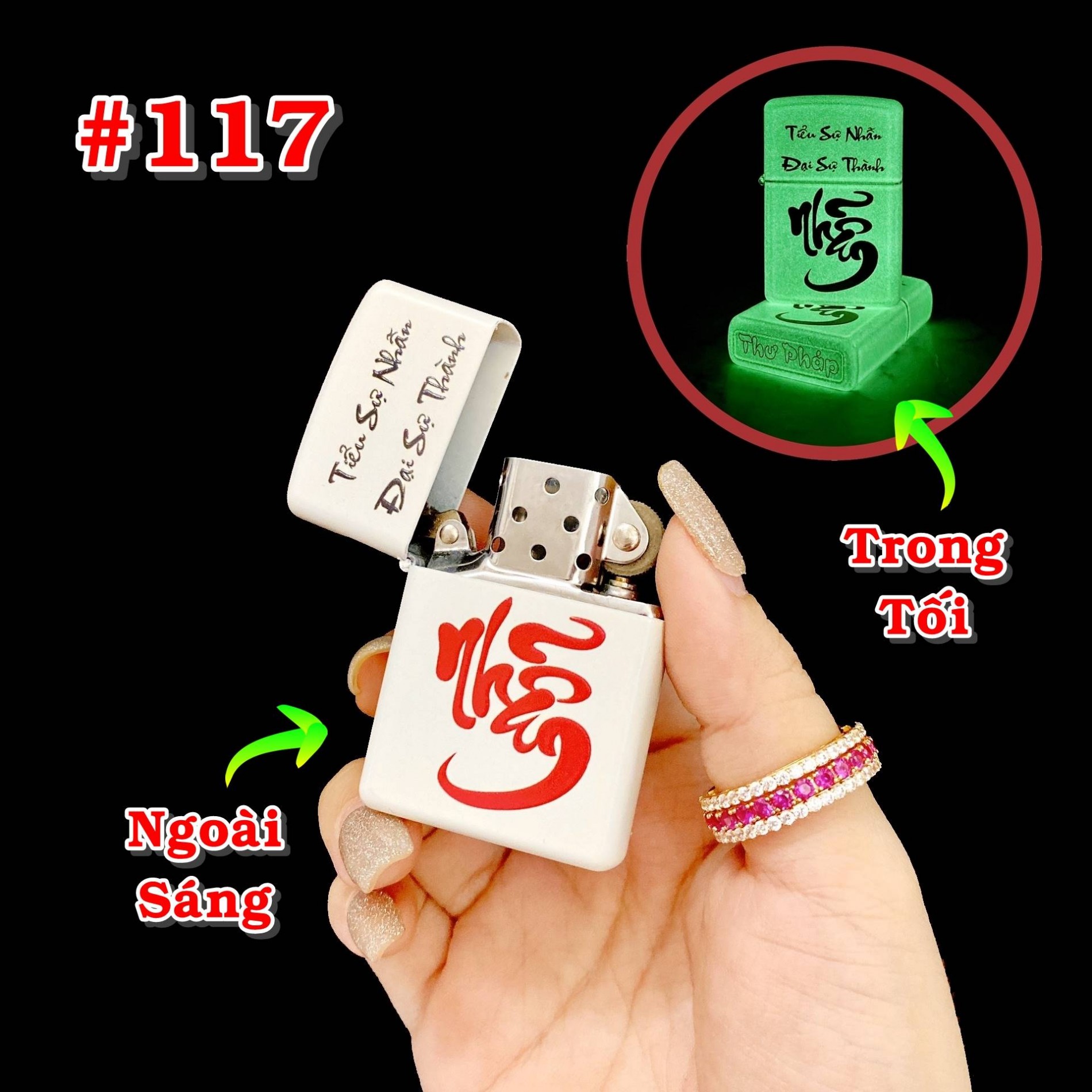 Kiệt tác nghệ thuật trên tay bạn: Bật lửa Zippo chữ thư pháp dạ quang - Nhẫn