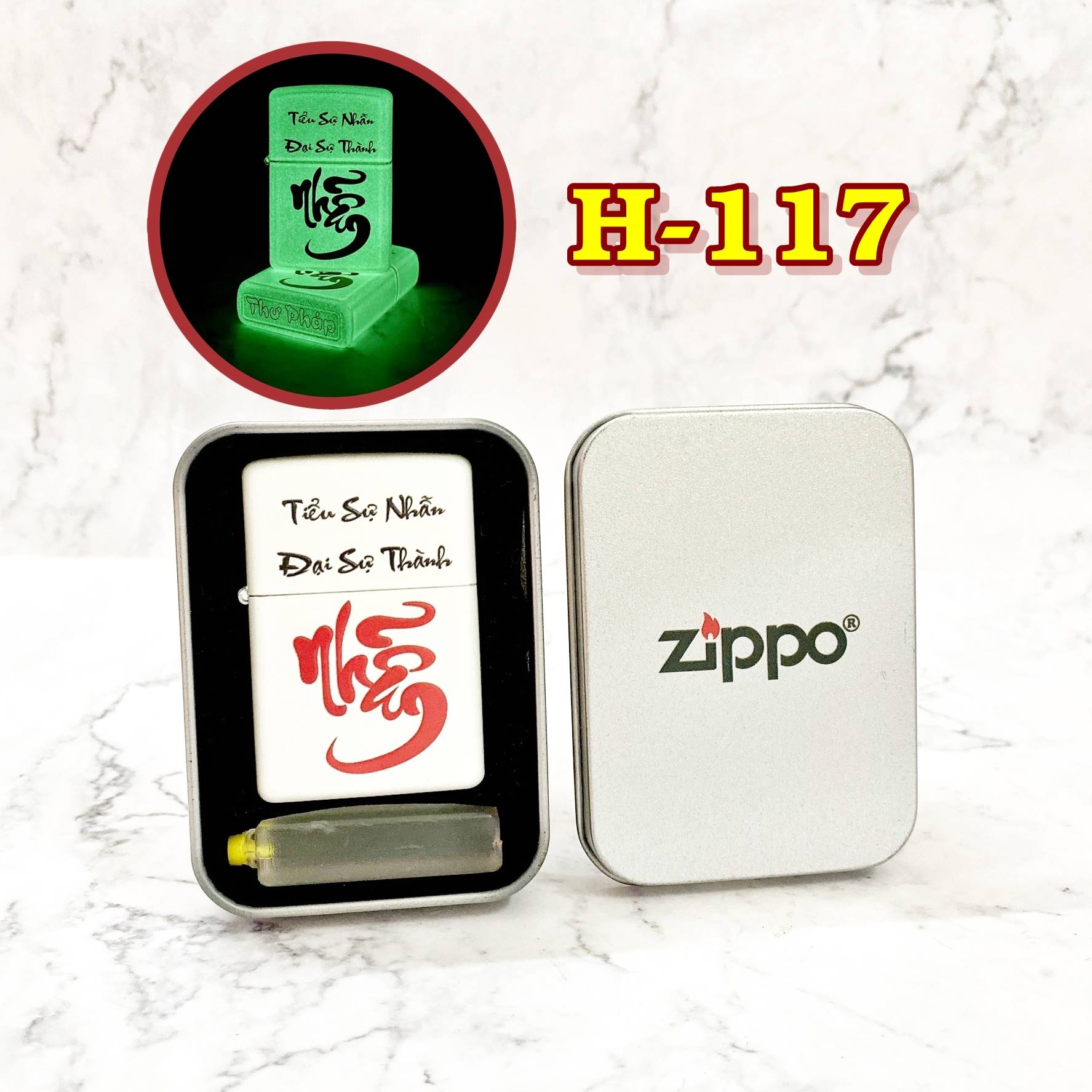 Sở hữu ngay chiếc Bật lửa Zippo chữ thư pháp dạ quang - Nhẫn để khẳng định phong cách cá nhân, thêm phần tự tin và thu hút trong mọi hoàn cảnh. Đừng bỏ lỡ cơ hội sở hữu một tuyệt tác công nghệ và nghệ thuật đỉnh cao này nhé!