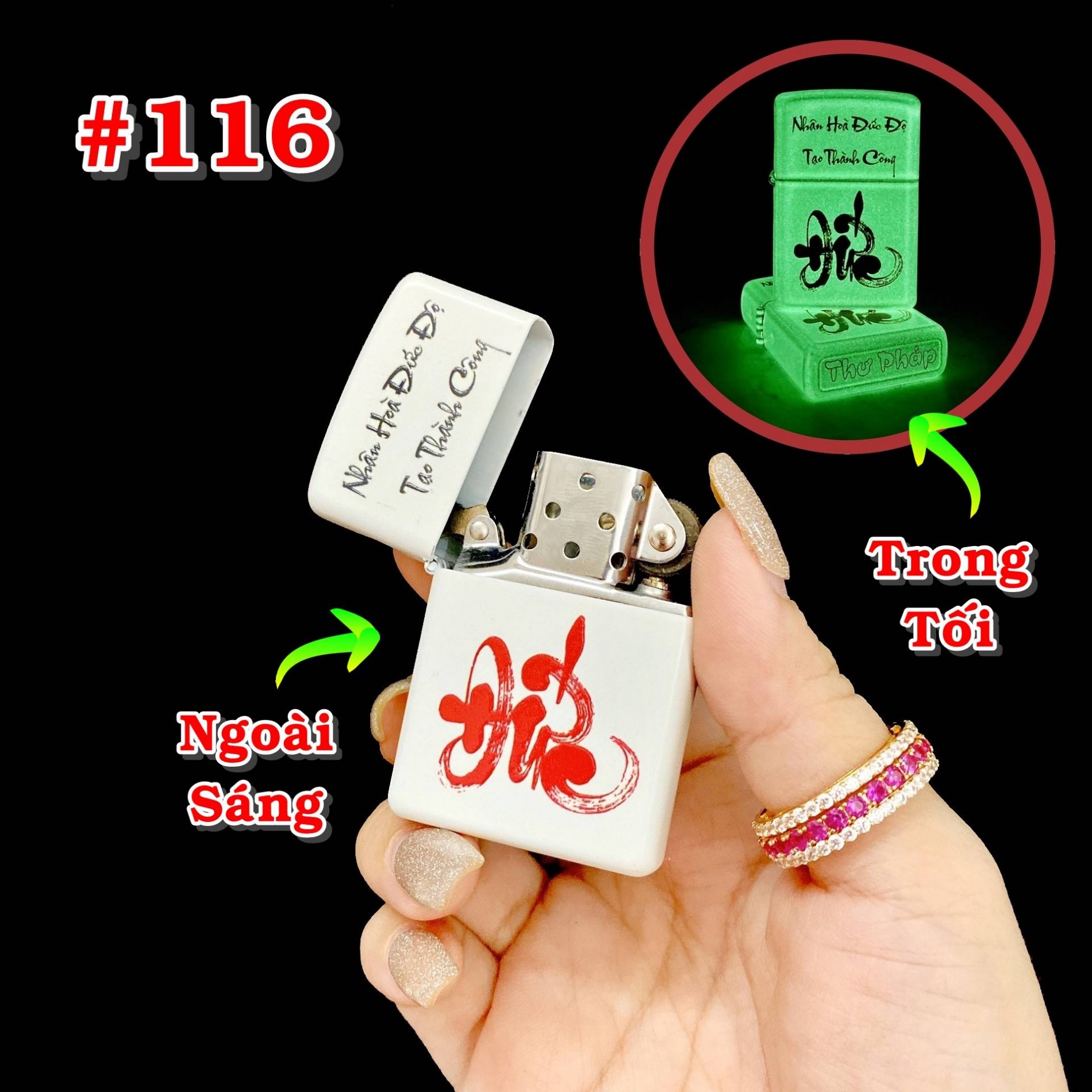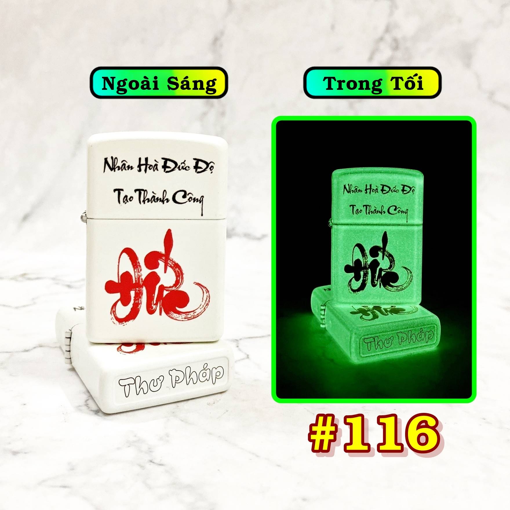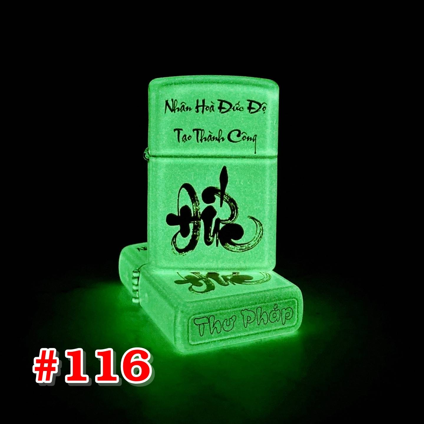 Bật lửa zippo dạ quang chữ đức thư pháp - Nhân Hòa Đức Độ