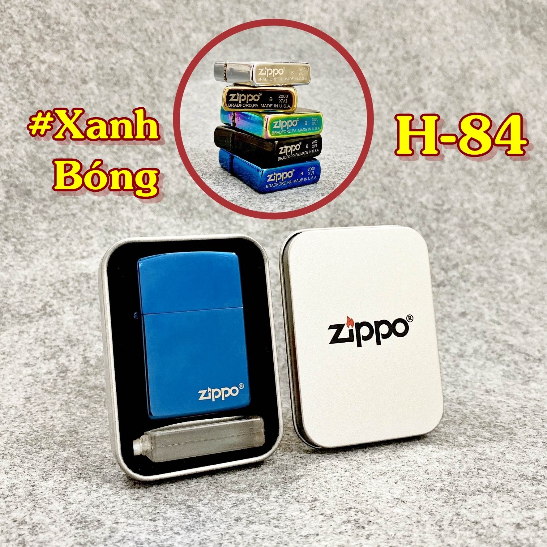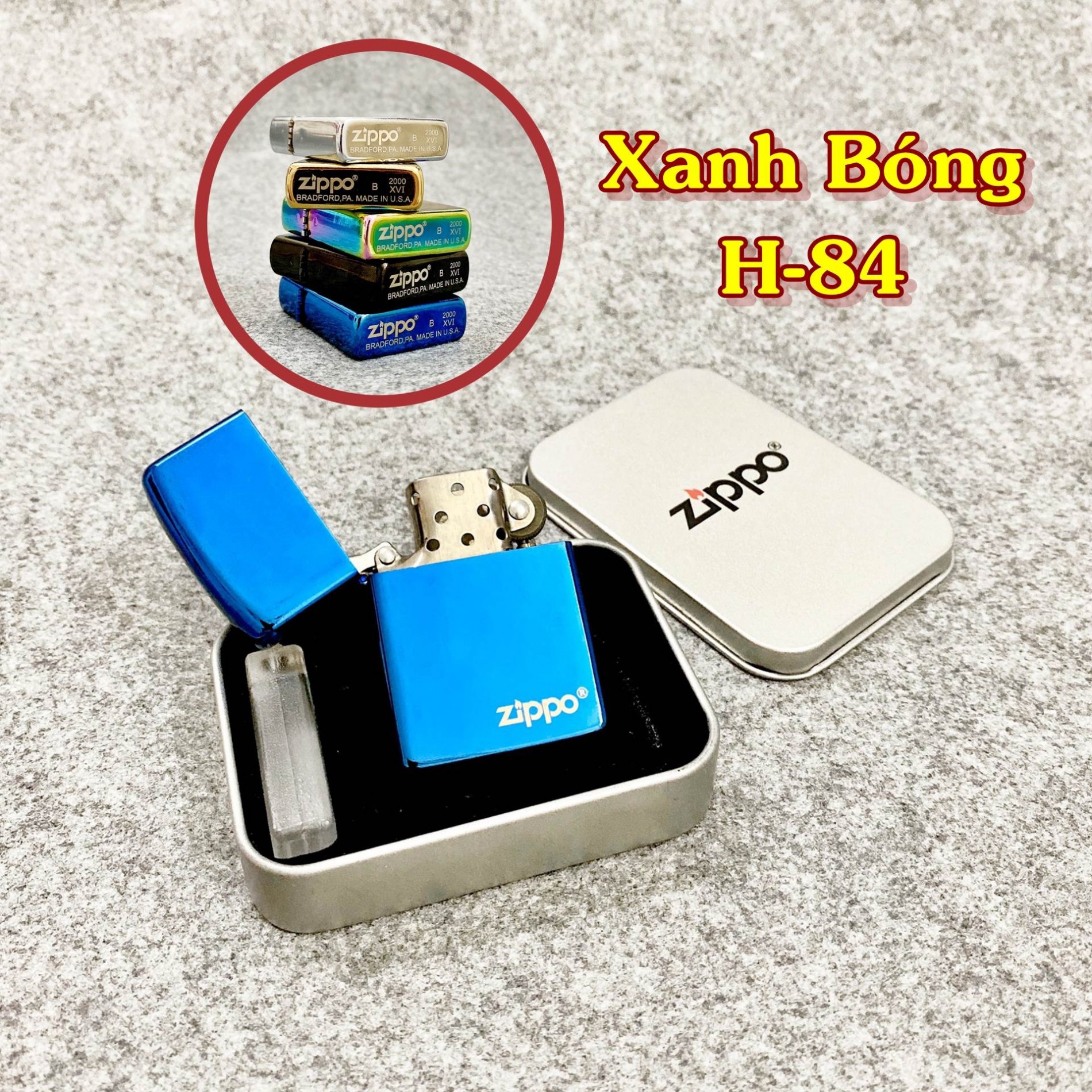 Bật lửa Zippo màu xanh trơn bóng hộp thiếc kèm xăng