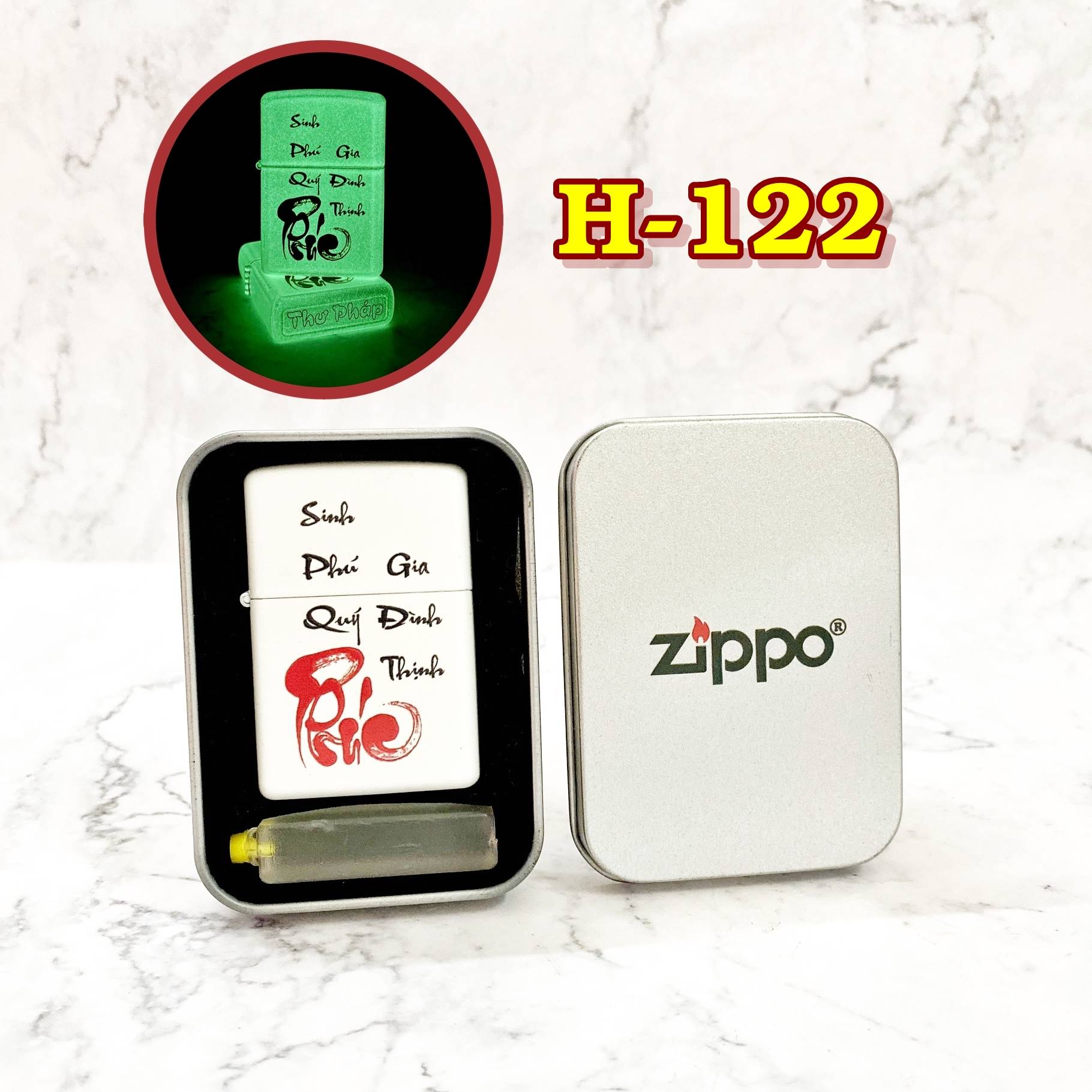 Đừng bỏ lỡ cơ hội sở hữu hoặc làm quà tặng một chiếc Zippo dạ quang chữ Phúc thư pháp đầy ý nghĩa này. Sản phẩm đi kèm hộp thiếc nguyên bản, sẵn sàng để bạn làm quà tặng hoặc trưng bày. Hãy để chiếc Zippo này mang đến cho bạn thêm nhiều niềm vui, may mắn và khẳng định phong cách riêng. Đặt hàng ngay hôm nay để nhận được những ưu đãi hấp dẫn!